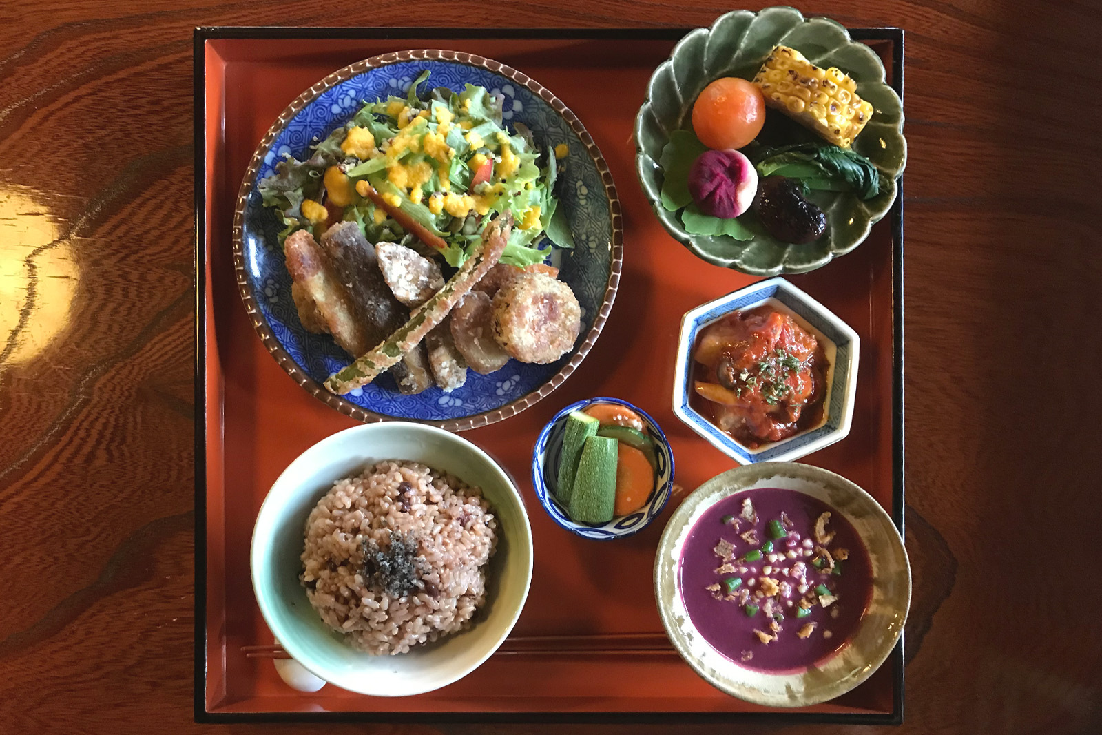 Our brown rice–centered vegetarian cuisine is gentle on the body and offers comforting flavors that support everyday living.